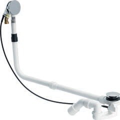 mit integriertem Einlauf, Sichtteile verchromt und Abgangsbogen 45° DN 40/50 mm für Sonderwannen extra lang, Bauhöhe 110 mm, Überlaufkörper 33 mm, Ablaufleistung 0,92 l/s, Sperrwasserhöhe 50 mm, Durchmesser 50 mm, Größe 4, Bowdenzuglänge 1.070 mm