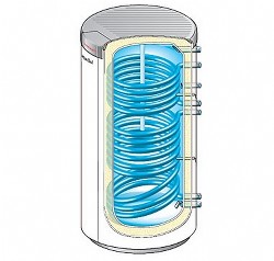 mit zwei gewendelten Glattrohrwärmetauschern